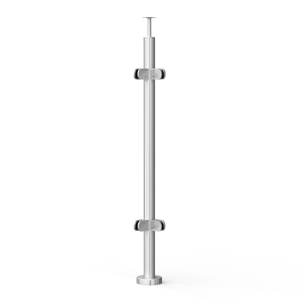 Poteau de garde-corps d’angle Ø 42,4 x 970 mm | avec 4 pinces à verre | V2A | sol